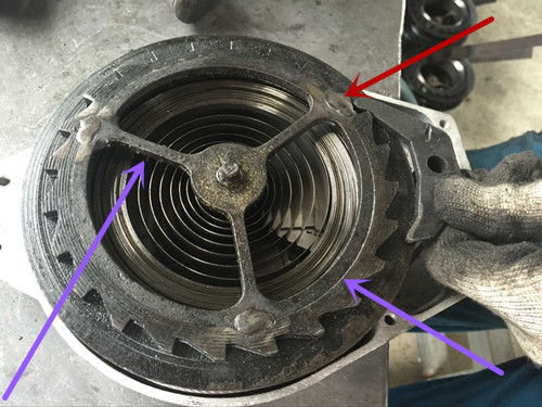 常見規(guī)格速差防墜器齒輪鑄造如下類型,現(xiàn)我工廠為客戶定做一批與常規(guī)防墜器結(jié)構(gòu)存在些許差異,卷簧安裝完畢另外一面擋圈改為如圖所示結(jié)構(gòu)形式。這種擋圈支撐力更強(qiáng)且使得齒輪360度受力更加均勻。圖1為河北東圣吊索具制造有限公司研制常規(guī)防墜器擋圈,圖2為為客戶改良后擋圈實(shí)物圖。 紅色箭頭展示兩款鋼絲繩防墜器擋圈均以******焊接工序?qū)跞潭?,紫色箭頭清除標(biāo)識(shí)兩款不同類型擋圈結(jié)構(gòu)區(qū)別。兩款防墜器擋