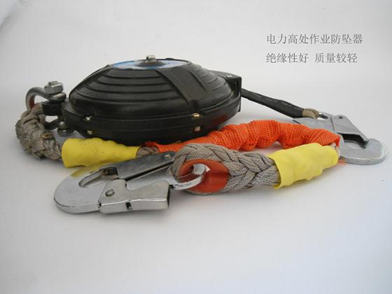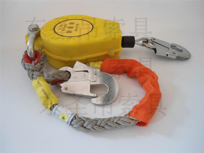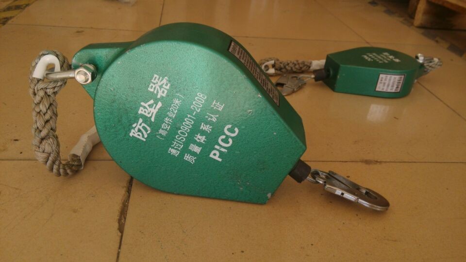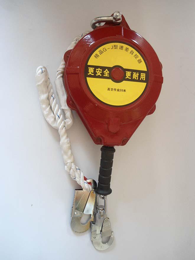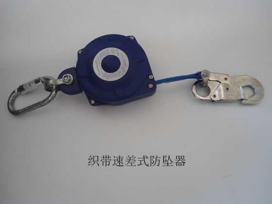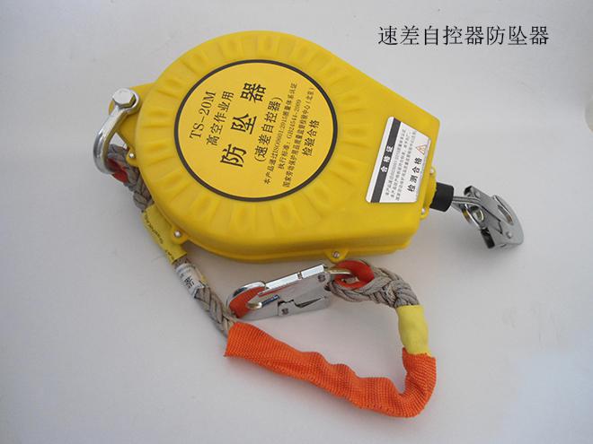 防墜器標準GB 24544-2009對速差自控器的定義為:安裝在掛點上,裝有可伸縮長度的繩(帶、鋼絲繩),串聯(lián)在系帶和掛點之間,在墜落發(fā)生時因速度變化引發(fā)制動作用的產品。
